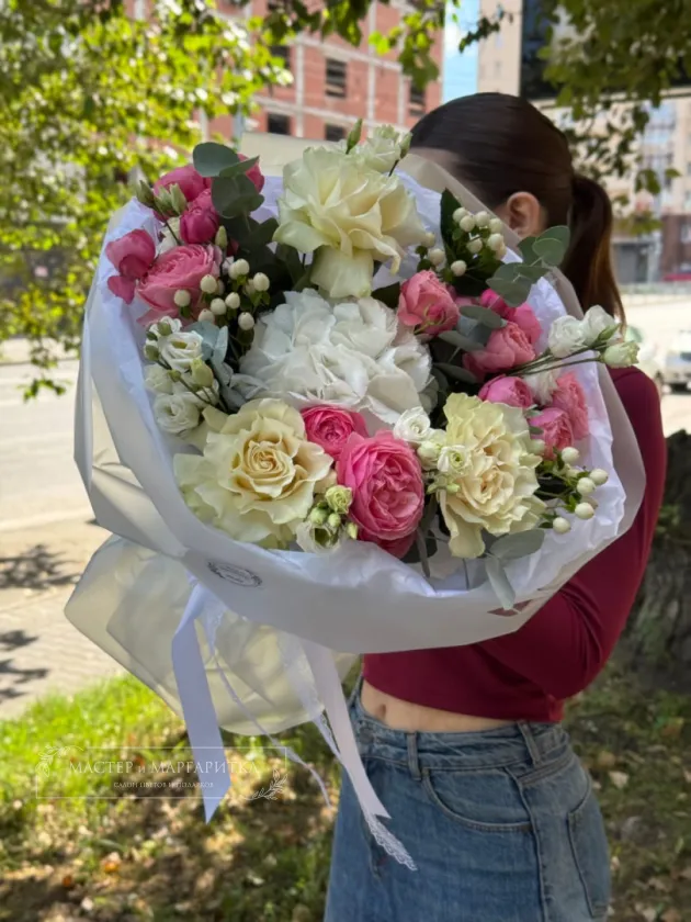 Цветовая гамма букета и упаковки может быть изменена по Вашему желанию на ту, что есть в наличии. Букет может отличаться от фото в силу различных факторов.
