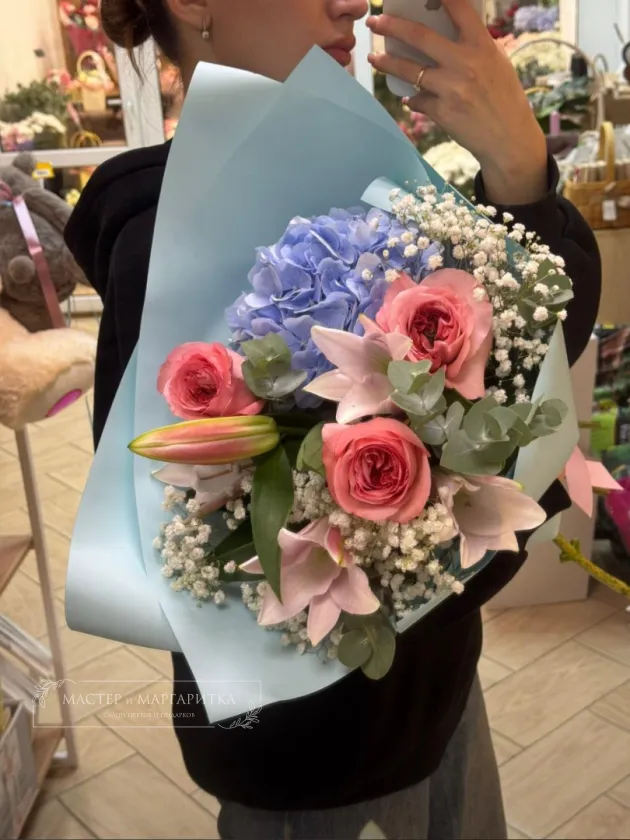 С букетом мы можем доставить шары гелиевые, конфеты, торт, игрушку, открытку.