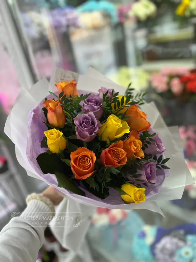Каждый букет уникален и может немного отличаться по оттенкам и упаковке, так как собирается вручную флористами.