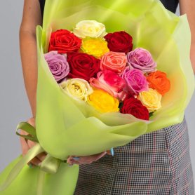При заказе такого букета вы можете обсудить с флористом желаемые оттенки роз и стиль оформления.