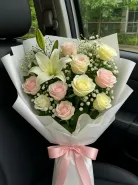 С букетом мы можем доставить шары гелиевые, конфеты, торт, игрушку, открытку.